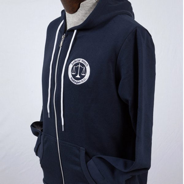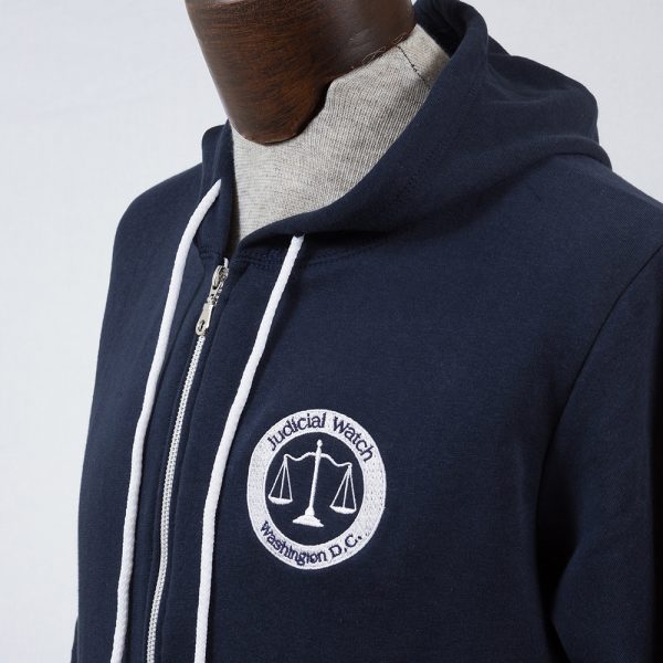 Show your support for Judicial Watch and look good too. This full-zip hoodie is super comfy and stylish. Material is a 7 Oz. 80/20 blend (cotton/polyester), with contrasting zipper and drawstring.